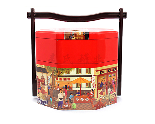此款廠家加工定制餅干食品禮盒采用方形外型,內卷線臺階蓋,身縮口,扣紙片,拍底結構,使其密封性能得到進一步的提升,盒身為一片鐵沖壓制成,經過扣骨處理,無飛邊劃手現象。底部為外卷線鑼底。216*136*100mm的規格尺寸,您也可以定制圓形、異形、三角形等其它精致盒型,多樣化的滿足您對鐵盒方面的要求。