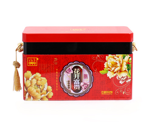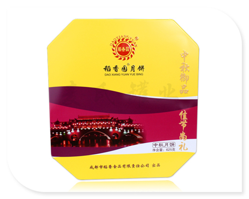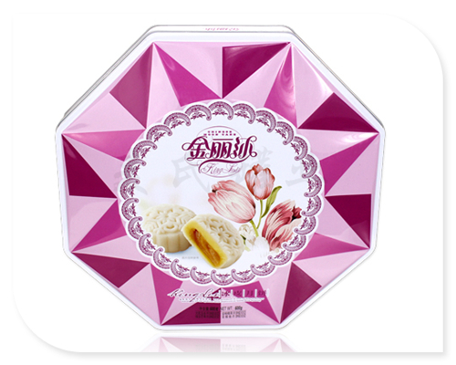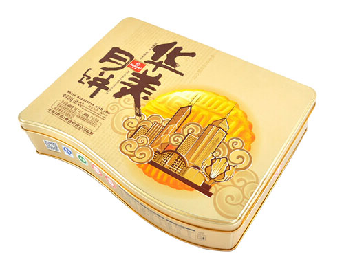 使得該款創(chuàng)意酒店月餅鐵盒包裝產(chǎn)品外觀的反光效果得到進(jìn)一步提高。鐵盒基材為國產(chǎn)0.23mm鍍錫馬口鐵精心打造而成,255*255*60mm的尺寸,可包四個(gè)美味可口的月餅產(chǎn)品。