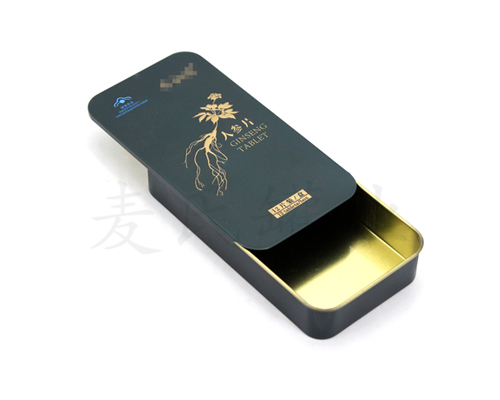 該款冬蟲夏草含片馬口鐵包裝盒選用四片式內(nèi)塞蓋結(jié)構(gòu),長方形結(jié)構(gòu),表面光滑平整,不易劃手。鐵盒做工精細(xì),盒蓋與盒身配合良好便于打開,骨位平滑。而這款鐵盒具有耐蝕性、防潮性等優(yōu)點(diǎn),印刷工藝更為一絕!