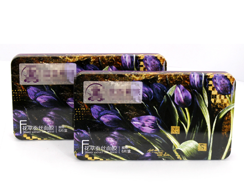 此款方形蠶絲面貼膜鐵盒包裝在印刷方面,鐵盒版面設(shè)計(jì)簡(jiǎn)約大方,醒目,加深消費(fèi)者對(duì)面貼膜產(chǎn)品品牌的宣傳。
