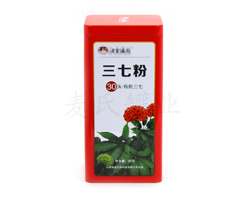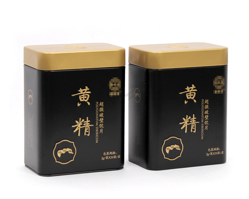 金色天麻粉鐵罐包裝,其印刷工藝為單面四色膠印,作有蓋、身、底印刷處理,而罐身整體為過水性亮光油,蓋、底過有高亮效果的金油。您還可選擇過爆炸油、皺紋油、珠光油等不同的外觀效果。鐵罐的規格尺寸為97*77*155mm。可包裝60克左右的天麻粉產品。