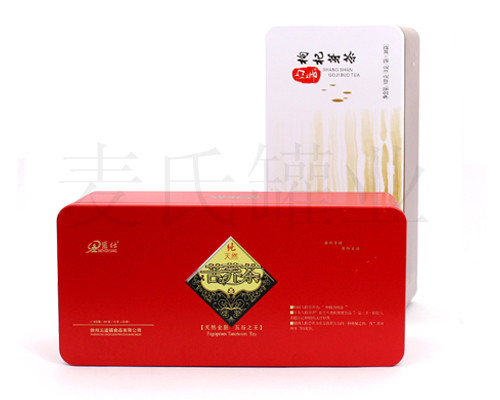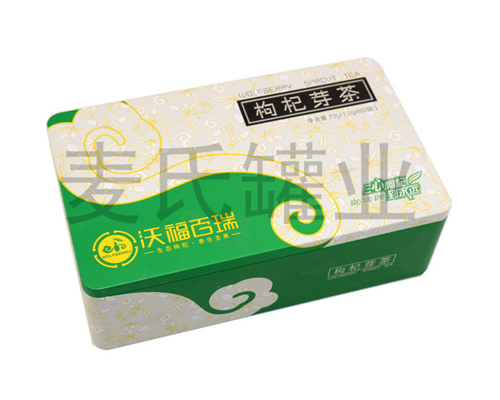 此款枸杞芽茶鐵盒,四片式天地蓋結構,扣肩鑼底設計。200*90*83mm的規格尺寸,此款枸杞芽茶鐵盒,采用專色UV技術印刷工藝制造而成,其印刷成品圖文清晰。這款枸杞芽茶鐵盒,可根據客戶的不同需求選擇激凸工藝,可把LOGO或產品形象制成激凸效果,是整個鐵盒具有立體化效果,對消費者制造一種視覺上的沖擊。