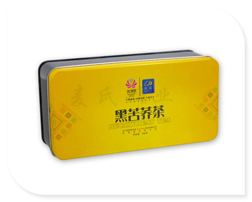 這款苦蕎茶鐵罐的制作基材是馬口鐵制造而成的,選用單面四色印刷工藝,鐵盒外面過光油,內過金油,在美化鐵盒外觀的同時,也起到了保護鐵盒的作用,以免受到運輸途中的不良因素影響。