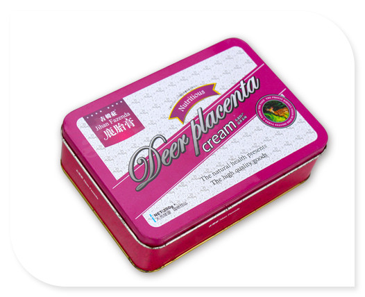 該款鹿胎膏馬口鐵包裝罐為經(jīng)典的長方形造型設(shè)計,215*135*40mm尺寸,可包裝120g不等的鹿胎膏產(chǎn)品,能滿足大容量產(chǎn)品包裝需求。為了順應(yīng)多樣化的市場包裝需求,此款鹿胎膏馬口鐵包裝罐可做成正方形、心形、圓形、橢圓形、車形、書本形等異形造型。