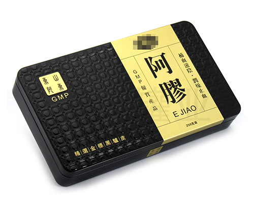 這款復方阿膠膏鐵罐表面有雕刻工藝處理,雕刻(激凸)分為平雕與浮雕,浮雕工藝制作出來的鐵罐產(chǎn)品,圖案文字會以3D立體化的視覺方式展現(xiàn)出現(xiàn)。我司還可制作出裱紙、貼鉆、鐳射等工藝效果。