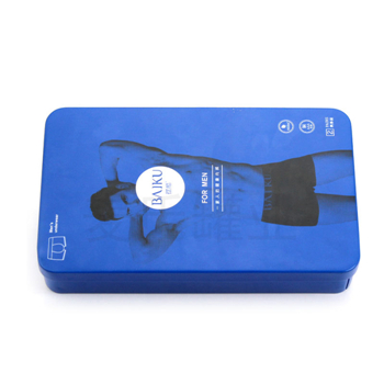 此款4條裝男士內褲鐵盒定做,結構為:內卷線蓋,扣底。4條裝男士內褲鐵盒可根據客戶的設計進行印刷、雕刻。關于印刷,客戶可根據自己的設計選擇CMYK印刷或者PMS印刷,單面或者雙面皆可、關于過油,客戶可選擇在4條裝男士內褲鐵盒上過光油或者啞油,光油能使顏色更加光鮮亮麗,啞油更多紙質效果,印象派藝術感強烈。