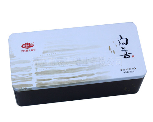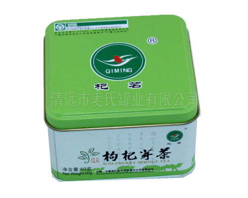 鐵枸杞芽茶包裝盒(枸杞芽茶包裝鐵盒,定制枸杞芽茶禮盒,馬口鐵枸杞芽茶盒生產)鐵枸杞芽茶包裝盒延展性好,抗氧化能力,印刷精美,不易破損,各種形狀均可以定制,方便運輸。