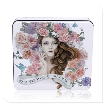 長方形眼妝套裝鐵盒包裝材質為鍍錫馬口鐵料打造而成,盒形雖為經典的長方形,但在設計方面選用了新穎創意的弧度邊框進行制作。外卷線平蓋+身鑼底設計,屬于化妝品鐵盒包裝產品。而鐵盒密封包裝性,長時間保證彩妝產品不受影響。