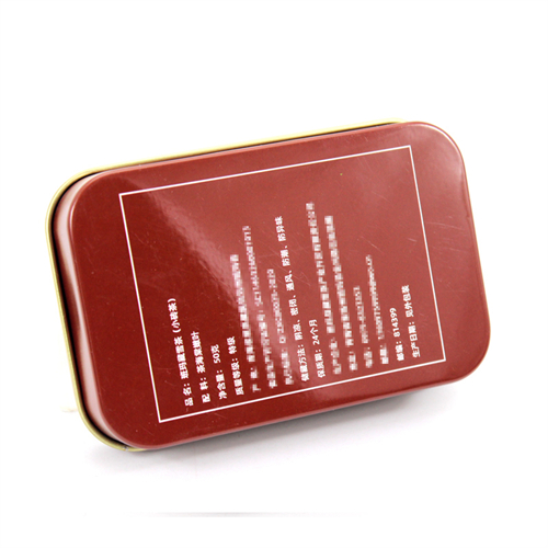 此款長方形馬口鐵茶葉鐵盒包裝為單面CMYK四色印刷處理,外過水性亮光油,內(nèi)涂金油,過油目的不僅能提高鐵盒整體效果,具有強(qiáng)烈的金屬質(zhì)感外,還對鐵盒印刷面形成一層致密的保護(hù)膜,對鐵罐刮花、防銹起到一定的防護(hù)作用。除了過光油、透明油外,客戶還可選擇過皺紋油、珠光油、爆炸油等。