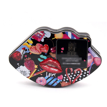 此款嘴唇形潤唇膏鐵盒子是化妝品鐵盒包裝產品之一,在制作工藝上,鐵盒表面印刷為單面印刷,為CMYK四色印刷處理,鐵盒印刷版面可讓客戶自行設計提供或由我司進行設計。印刷可選擇單/雙面,四色、專色進行印刷,常規條件下采用一專+四色進行印刷,而印刷后的鐵料還需經過油料處理,外部通常過上光油,內部上金油。