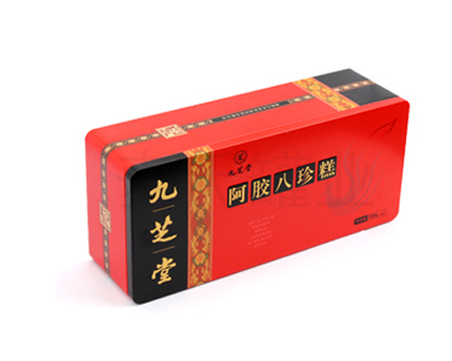 好的產品再配上好的包裝,能夠讓消費者產生沖動的購買欲望,此款180g裝阿膠八珍糕禮盒鐵罐子,長方形造型,由蓋、內蓋、身、底四個部分組成,內過光油,外過啞油、顏色鮮艷明亮,無色差,客戶還可根據您的產品需求選擇過透明油、爆炸油、皺紋油等其他油墨,多方面滿足您的包裝需求。