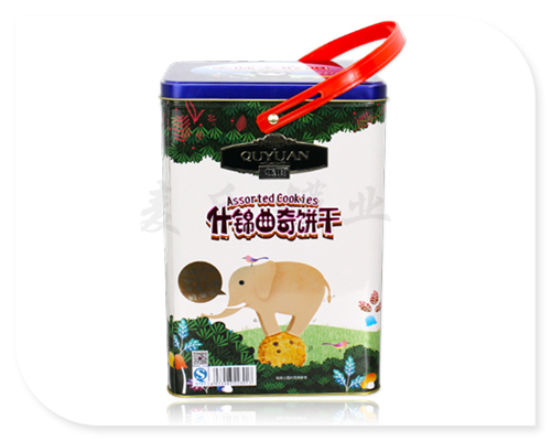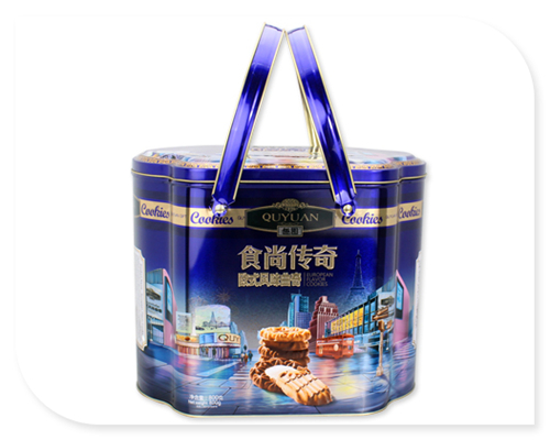 此款雜糧餅干手提鐵罐,屬于鐵盒系列中的一款,采用國產一級馬口鐵為基材沖壓而成,復合式手提鐵罐。這款鐵罐,可根據客戶的不同需求,進行結構上和印刷上的修改。在結構上可改為方形、圓形、橢圓形或其它造型。印刷上可選擇四色或專色印刷工藝。關于印刷,客戶可在鐵罐上過光油、啞油、爆炸油、珠光油等。